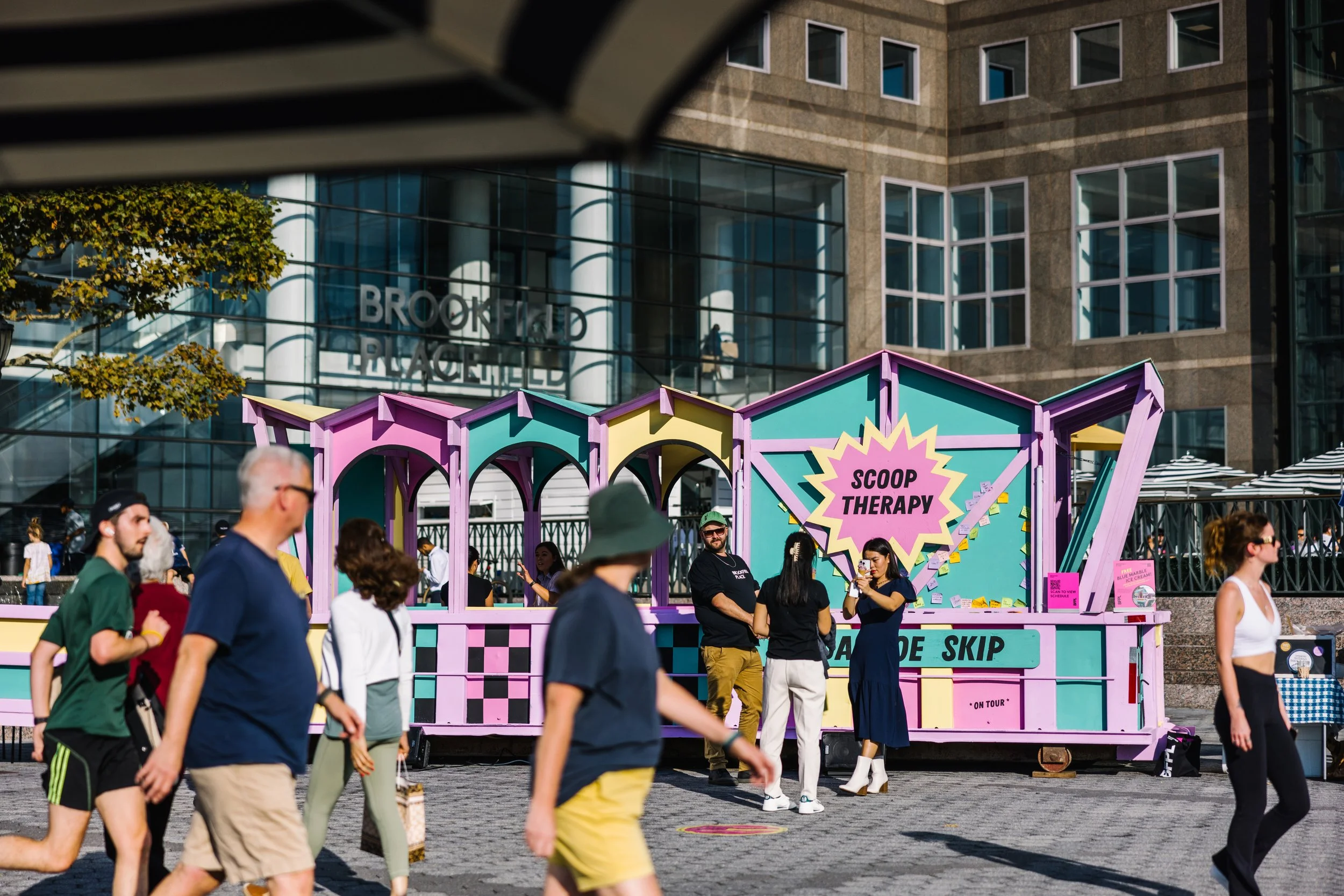 The candy-colored, ice-cream-kiosk-in-a-skip offering Brooklyn’s Blue Marble ice cream, comes to Brookfield Place New York following its Summer 2022 London tour, with a commissioned documentary by BBC World Service will be airing on November 18 th , 2022.